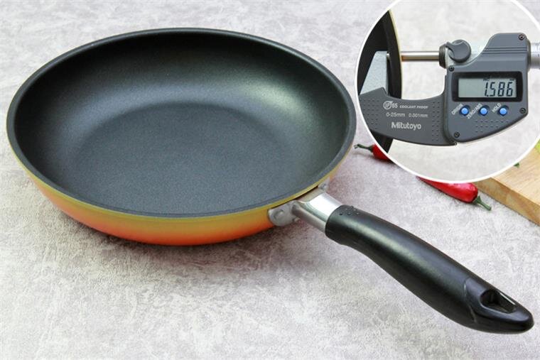 Thân, đáy đồng nhất Đáy chảo chống dính phẳng phủ lớp sơn chịu nhiệt bền bỉ. Thiết kế đế chống trơn trượt đảm bảo an toàn cho người sử dụng.