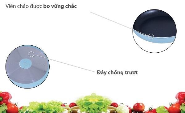 Thiết kế tiện dụng Tay cầm chảo thon và nhỏ gọn, đục lỗ treo tiện lợi cho người dùng. Đáy chảo dày 0,2cm, thiết kế chống trượt, an toàn hơn khi đun nấu. Viền chảo được bo chắc chắn giúp chảo không bị móp méo trong quá trình sử dụng hay bị va đập. Chảo sử dụng được trên bếp ga, bếp điện, bếp hồng ngoại, halogen.