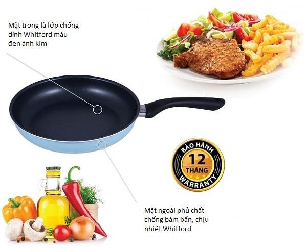 Lớp chống dính an toàn cho sức khỏe Phủ lớp chống dính Whitford ở cả mặt trong và mặt ngoài chảo, an toàn cho sức khỏe, chịu được nhiệt độ cao, khó trầy xước giúp bạn chuẩn bị các món ăn ngon lành và đẹp mắt.