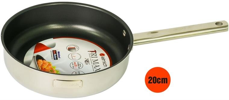 Chảo Tri-max XS EL-3751 có đường kính 20cm, thành chảo cao 6m với thiết kế cứng cáp, chắc chắn, bền bỉ, an toàn với sức khỏe. Chất liệu chiếc chảo này bằng inox, sẽ thích hợp với mọi món chiên, xào.... mà không sợ thực phẩm bị bám cháy khét thực phẩm. Phần thân chảo sử dụng chất liệu inox cao cấp chống gỉ sét, chịu được va đập, ít méo móp. Chảo được cấu tạo bởi nhiều lớp, lớp trong cùng là inox 304 tiêu chuẩn dành riêng cho thực phẩm, không gỉ, chống bám bẩn tối ưu, an toàn cho sức khỏe. Đặc biệt lớp phủ chống dính Quai talium 3 lớp đen ánh kim của Whitford tuyệt đối an toàn.