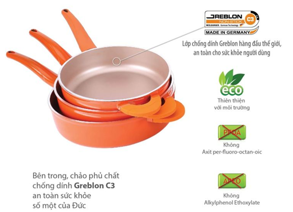 Lớp chống dính Greblon C3 an toàn, bền đẹp