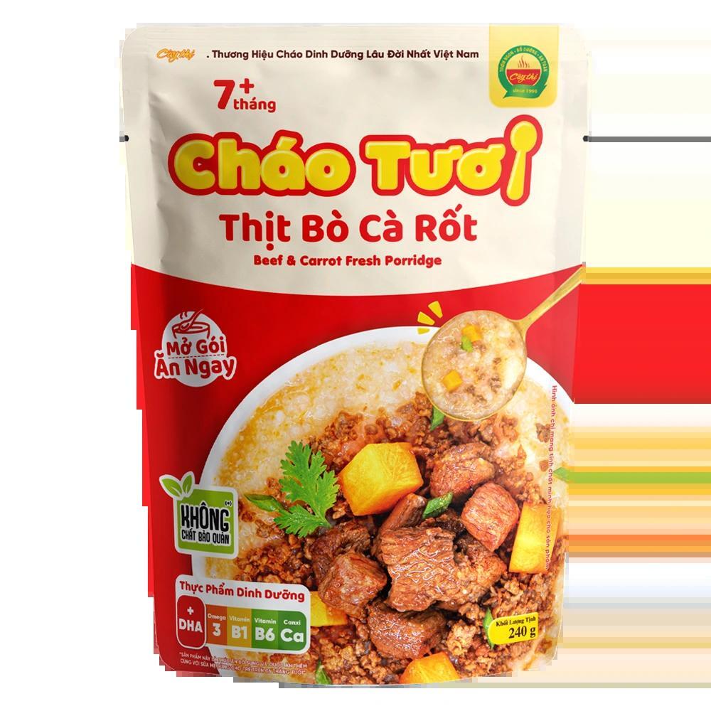 Chào chị Nhi, dạ Cháo tươi thịt bò cà rốt có Hướng dẫn sử dụng. Cách 1: Cho sản phẩm còn nguyên bao bì vào nồi nước sôi khoảng 3-5 phút;. Cách 2: Mở bao, cho sản phẩm vào tô và làm nóng trong lò viba khoảng 1-2 phút. Hoặc có thể hâm trên bếp ạ. Con Cưng xin cảm ơn.