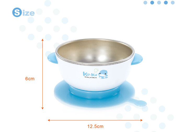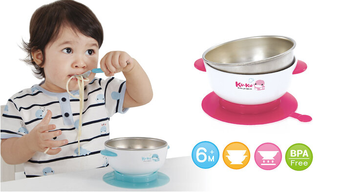 Chén Ăn Inox Có Đế Dính Kuku Duckbill với thiết kế chân hút bằng silicone, kết hợp lớp ngoài chống nóng, lớp trong inox giúp mẹ có thể dễ dàng hâm đồ ăn hay nấu cháo, cơm mà không lo chén bị trượt, ngã đổ, là lựa chọn lí tưởng để mẹ yên tâm chăm sóc bữa ăn hằng ngày cho bé.