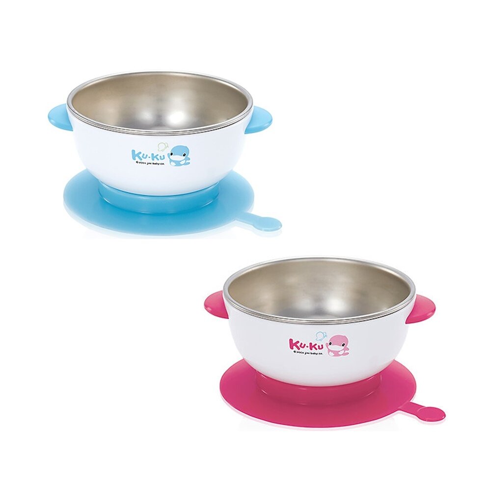 Chén Ăn Inox Có Đế Dính Kuku Duckbill Xanh/Hồng