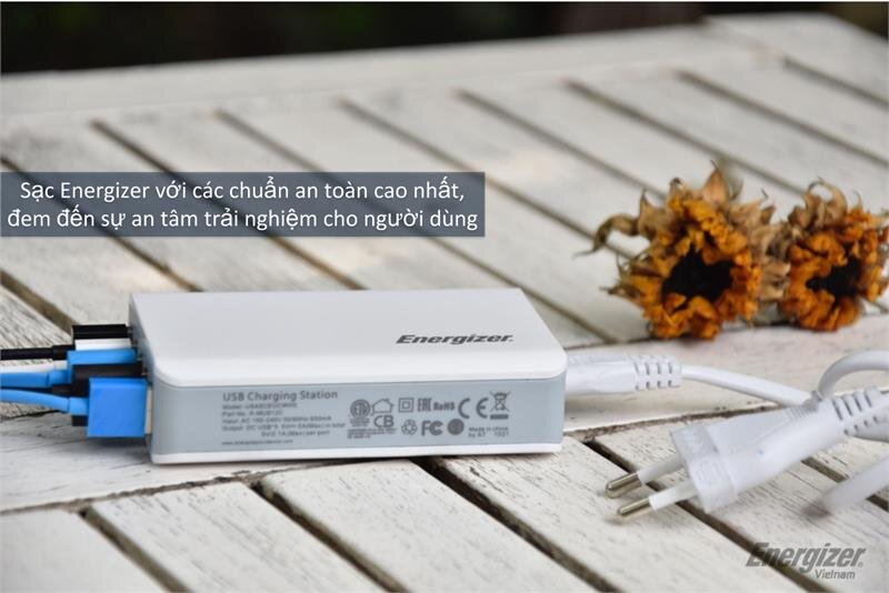 Sạc Energizer 5 cổng USB - chứng nhận Châu Âu về an toàn & chống cháy nổ