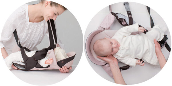 - Đối với PremiumBreezing, việc lắp và đeo địu được hoàn thành chỉ trong 15 giây. Thiết kế mở hoàn toàn của địu cho phép dễ dàng đặt để và nhấc Bé ra khỏi địu.