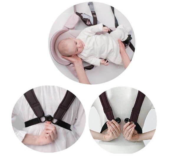 - Đai an toàn 2 bên giúp đỡ đầu khi Bé ngủ hoặc gập xuống để bảo vệ cổ Bé khi dùng địu kiểu ôm.