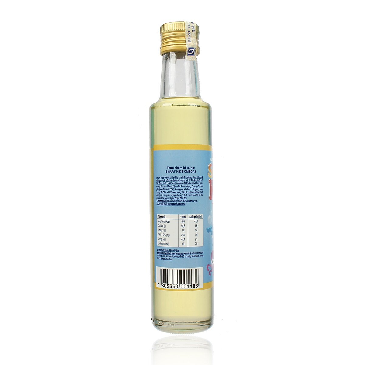dinh dưỡng cá hồi Smart Kids Omega 3 là dầu ăn dinh dưỡng được đặc chế trong các bữa ăn của bé từ 7 tháng đến 8 tuổi. Tinh chế từ cá hồi tự nhiên, mỗi chai dầu cá hồi Smart Kids Omega 3 cung cấp trực tiếp hàm lượng đậm đặc Omega 3 (DHA và EPA), Omega 6 – các dưỡng chất quan trọng và cần thiết cho sự phát triển não bộ và thị giác của bé ngay từ những năm tháng đầu đời.