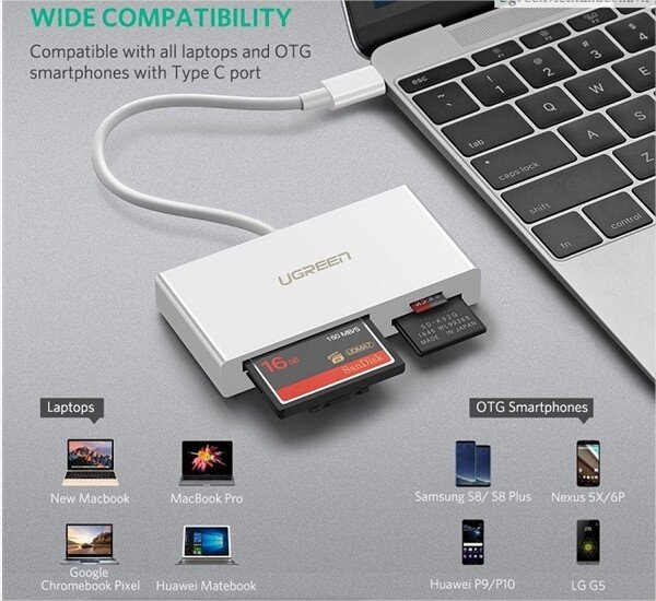 Giới thiệu: Đầu đọc thẻ USB Type-C cho thẻ nhớ TF/SD/CF/MS Ugreen 40444