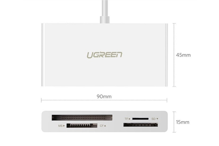 Đầu đọc thẻ USB Type-C cho thẻ nhớ TF/SD/CF/MS Ugreen 40444 cao cấp Thông tin sản phẩm : Đầu đọc thẻ USB-C cho thẻ TF/SD/CF/MS Ugreen 40444 Hãng sản xuất : Ugreen Mã sản phẩm : 40444 Sản phẩm đầu đọc thẻ USB Type-C cho thẻ nhớ TF/SD/CF/MS chính hãng Ugreen 40444  với nhiều tính năng ưu việt giúp các bạn chuyển dữ liệu nhanh và hiệu quả từ thẻ TF / CF / SD / MS sang máy tính xách tay hoặc điện thoại Android với cổng USB Type-C . Truyền dẫn dữ liệu siêu nhanh   - Đầu đọc thẻ USB C được phân bổ với giao diện USB 3.1 với tốc độ truyền cao nhất có thể lên tới 5Gbps, tiết kiệm thời gian để đọc và truyền.   Tương thích với nhiều hệ điều hành