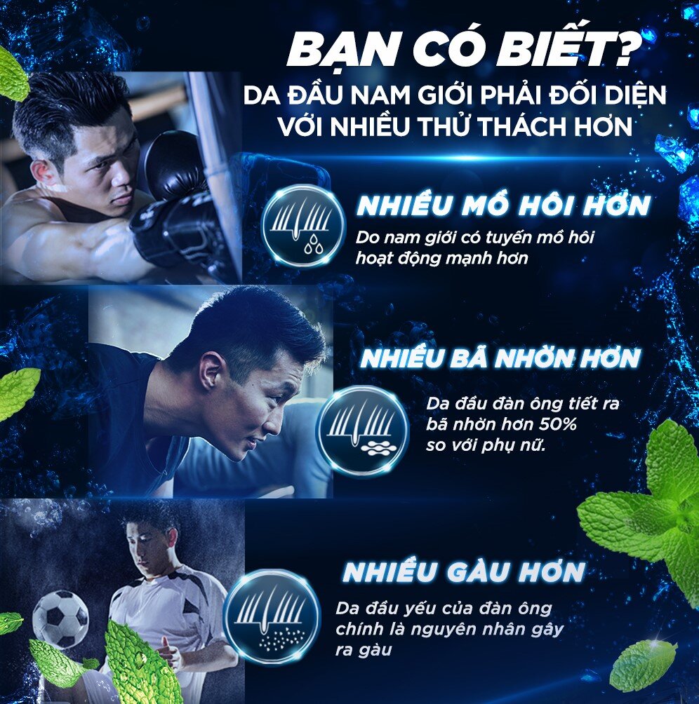 Đối với nam giới, đặc biệt là những người thường tập luyện với cường độ cao, đổ nhiều mồ hôi khiến cho da đầu nhờn, ngứa và dễ sinh gàu. Do đó, việc chăm sóc mái tóc và da đầu cho nam giới đòi hỏi những sản phẩm chuyên biệt hơn.