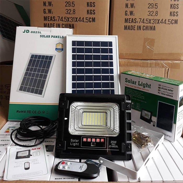 Bộ sản phẩm của đèn Led chiếu sáng năng lượng mặt trời JD-8825L