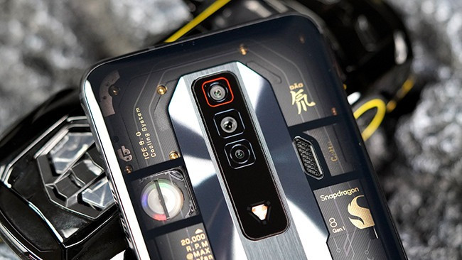 Bên cạnh đó, ở mặt sau, máy cũng được trang bị 1 dải đèn Led RGB đặc trưng của những chiếc điện thoại gaming hiện nay. Cùng với đó, mặt sau cũng có chứa cụm 3 camera kèm đèn Led tam giác cực độc đáo.