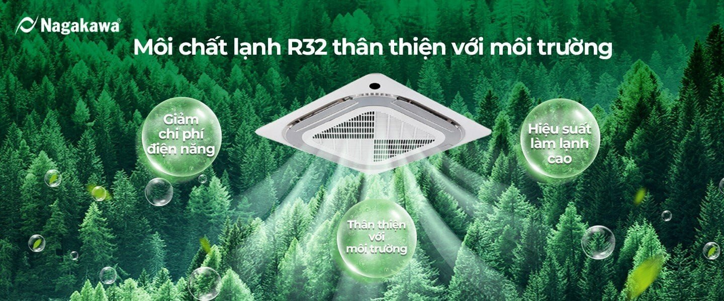 Điều hòa sử dụng môi chất làm lạnh R32 tối ưu mới nhất, tiên tiến nhất hiện nay. Đây là môi chất có hiệu suất làm lạnh cao, thân thiện với môi trường, góp phần giảm khí thải và không gây hiệu ứng nhà kính.