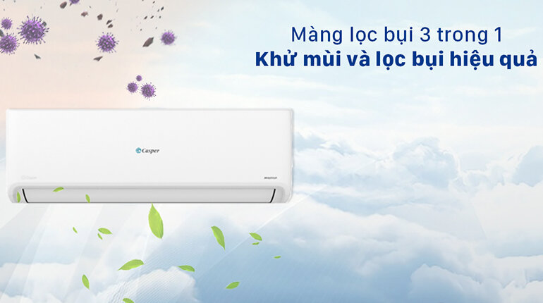 Tấm lọc khí 3 trong 1 tích hợp trên điều hòa Casper GC-24IS32 không chỉ có tác dụng loại bỏ các formaldehyde độc hại trong không khí mà còn có khả năng khử sạch các mùi hôi khó chịu như: mùi thức ăn, mùi thuốc lá, mùi thú nuôi, mùi nấm mốc.