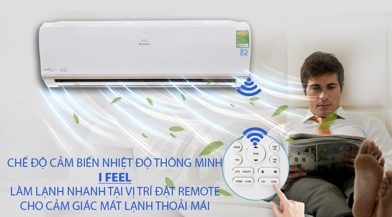 Nút bấm I Feel cho phép máy lạnh Electrolux có khả năng cảm nhận được vị trí của remote trong phòng, từ đó tập trung làm mát tại một điểm cách vị trí của remote chính xác nhất, bạn chỉ cần để remote cạnh bên, máy lạnh sẽ mang đến phút giây thư giãn sau những giờ làm việc căng thẳng.