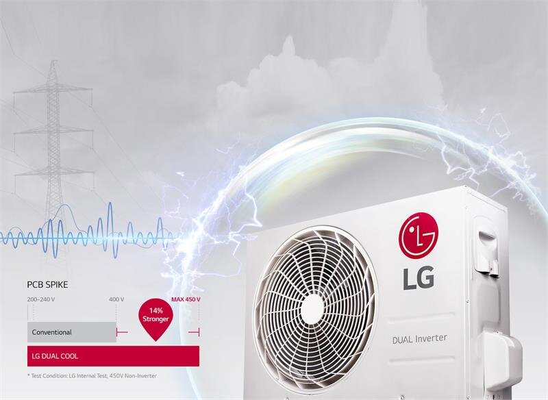 LG PCB (Bảng mạch điện) đã được nâng cấp để tăng khả năng chịu được các biến đổi điện áp, vì vậy đảm bảo sự an toàn khi có điện áp cao hoặc điện áp tăng vọt, đồng thời tăng cường độ bền chung của máy điều hòa không khí.