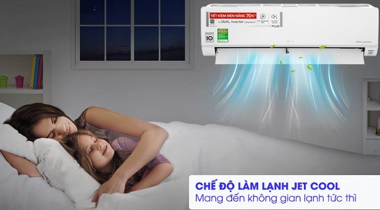 Khi chế độ làm lạnh nhanh Jet Cool được kích hoạt, máy nén sẽ ngay lập tức chạy với công suất tối đa, chỉ sau 3 phút hoạt động nhiệt độ phòng sẽ được hạ ngay xuống 5 độ.