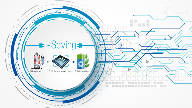 Bên cạnh phần cứng, máy còn trang bị công nghệ i-Saving với khả năng điều chỉnh nhiệt độ cài đặt theo đường hình xoắn thay vì đường thẳng như truyền thống. Nhiệt độ cài đặt luôn nằm trong khoảng cơ chế i-Saving, do vậy, máy nén không cần thay đổi hoạt động quá nhiều khi nhận lệnh thay đổi nhiệt độ 1 cách đột ngột từ người sử dụng.