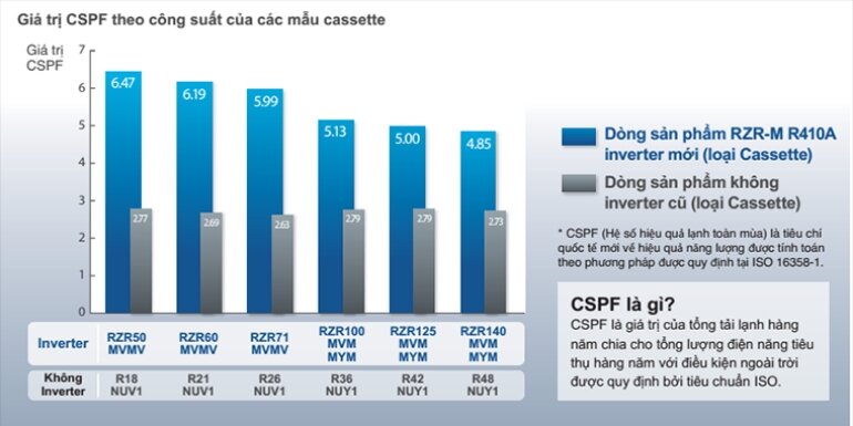 Với chỉ số CSPF của máy điều hòa dao động từ 4,85 - 6,47 giúp cho điều hòa có được khả năng tiết kiệm điện vượt trội trong quá trình sử dụng, người dùng cũng an tâm với tiền điện hàng tháng.