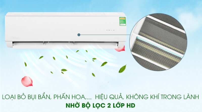 Lưới lọc 2 lớp HD siêu nhỏ của máy điều hòa Midea MSAFA-18CRDN8 có khả năng lọc sạch bụi bẩn, phấn hoa và các tác nhân gây dị ứng trong không khí. Bộ lọc này giúp không gian sống của bạn trở nên trong lành, bảo vệ sức khỏe hô hấp của gia đình, đặc biệt là trẻ em và người già.