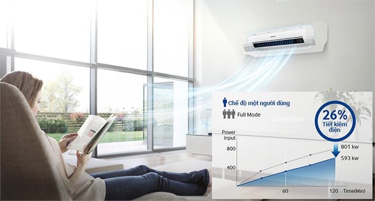 Khi trong phòng chỉ có một người, chế độ một người dùng của điều hòa AR18MSFNJWKNSV sẽ giảm công suất của áy nén xuống, giảm điện năng tiêu thụ, nhưng vẫn đảm báo bầu không khí luôn được thư giãn và thoải mái.