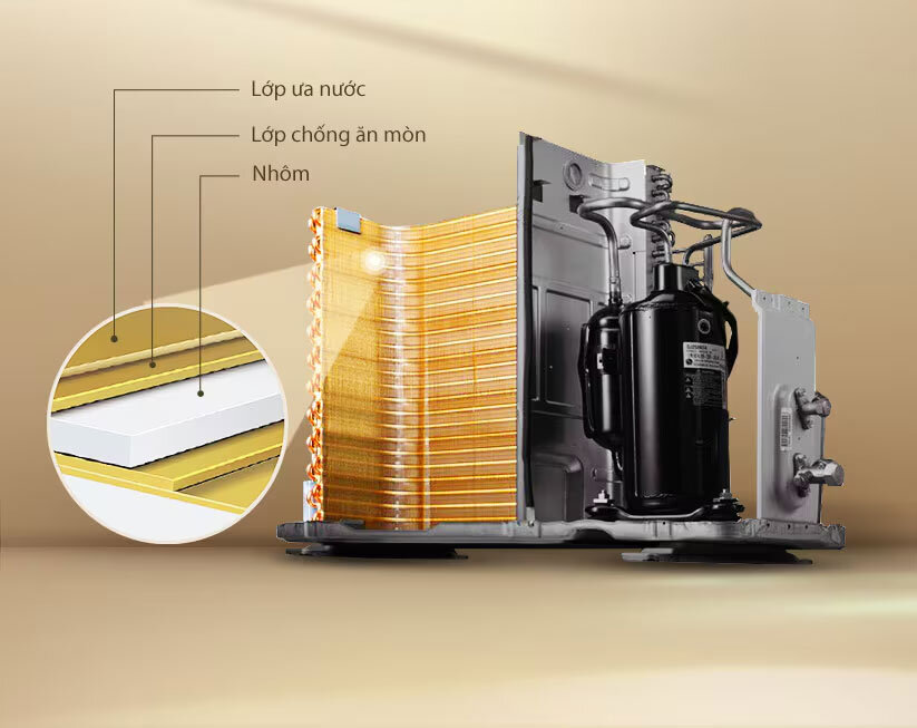 Gold Fin™ đảm bảo rằng bề mặt có khả năng chống ăn mòn cao hơn và tăng cường độ bền của bộ trao đổi nhiệt trong thời gian dài hơn nhiều.