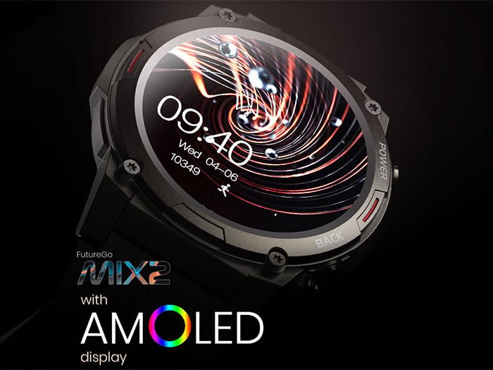 HiFuture FutureGo Mix 2 có kiểu dáng thời trang, phong cách thể thao được trang bị màn hình cảm ứng AMOLED 1.43 inch cho trải nghiệm cảm ứng nhạy, ấn tượng, rõ nét trong nhiều điều kiện ánh sáng khác nhau.