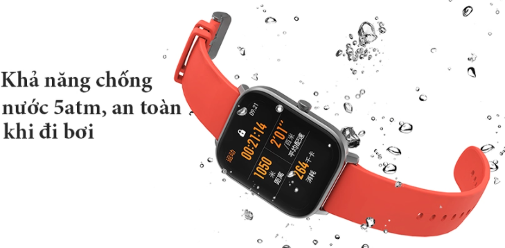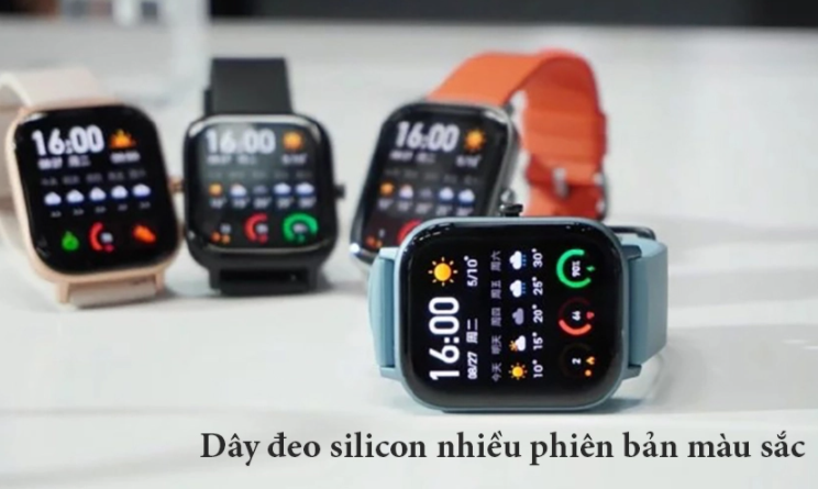 Dây đeo silicon nhiều phiên bản màu sắc, chống nước 5atm Chiếc smartwatch này sẽ đi kèm với dây đeo 20mm được làm từ chất liệu silicon dẻo và mềm, khi đeo giúp đem lại cảm giác vô cùng mềm mại và dễ chịu. Ngoài ra, với 6 tuỳ chọn màu sắc khác nhau đến từ khung viền và dây đeo, bao gồm màu hồng, xanh, đen, nâu be, đỏ và màu xám tro, người dùng tha hồ lựa chọn phong cách phù hợp với bản thân.