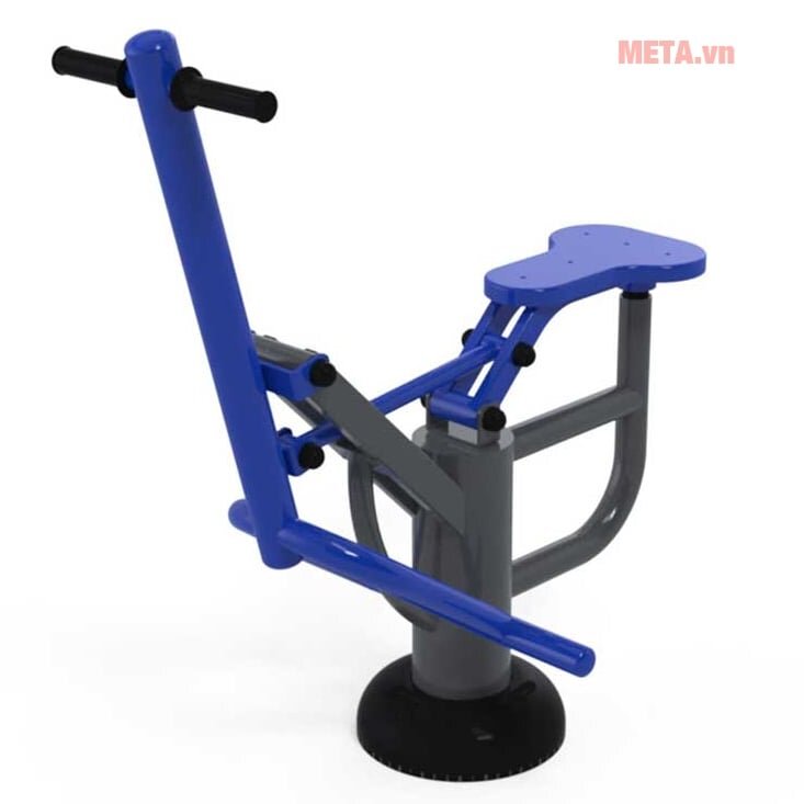- Cách tập: Ngồi trên thiết bị, hai tay nắm cần phía trước, hai chân đặt trên hai cần phía dưới. Dùng tay kéo về phía sau, hai chân duỗi thẳng, toàn thân ngả về phía sau.