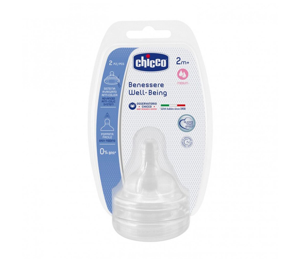 Hai Núm Ty Silicone Chicco Chống Đầy Hơi Điều Chỉnh Dòng Chảy 2M+