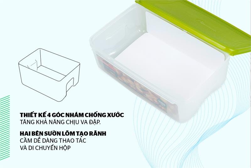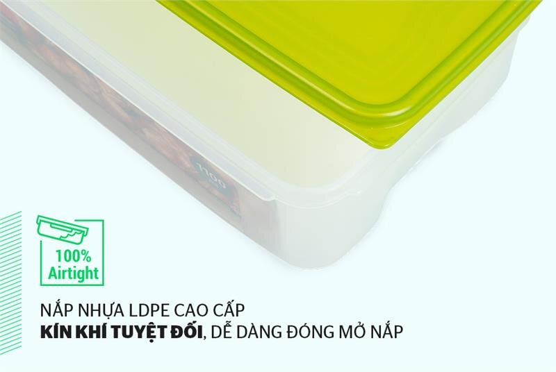 CÔNG NĂNG: AN TOÀN VỚI SỨC KHỎE – ĐA NĂNG, TIỆN LỢI Ngăn ẩm mốc, biến chất sản phẩm Hộp kín khí nên ngăn hơi nước xâm nhập vào thực phẩm, giúp ngăn ẩm mốc cũng như biến chất sản phẩm.