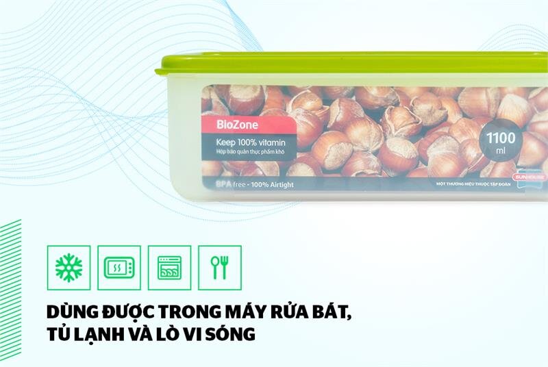 Hộp bảo quản thực phẩm khô BioZone 1100ml được làm bằng nhựa PP nhập khẩu từ Hàn Quốc. Đây là loại nhựa nguyên sinh cao cấp, chịu lực tốt, chịu nhiệt lên tới 100 độ C, không chứa chất gây ung thư BPA, có độ bền cao, kháng hóa chất và an toàn với sức khỏe. Nắp nhựa LDPE cao cấp