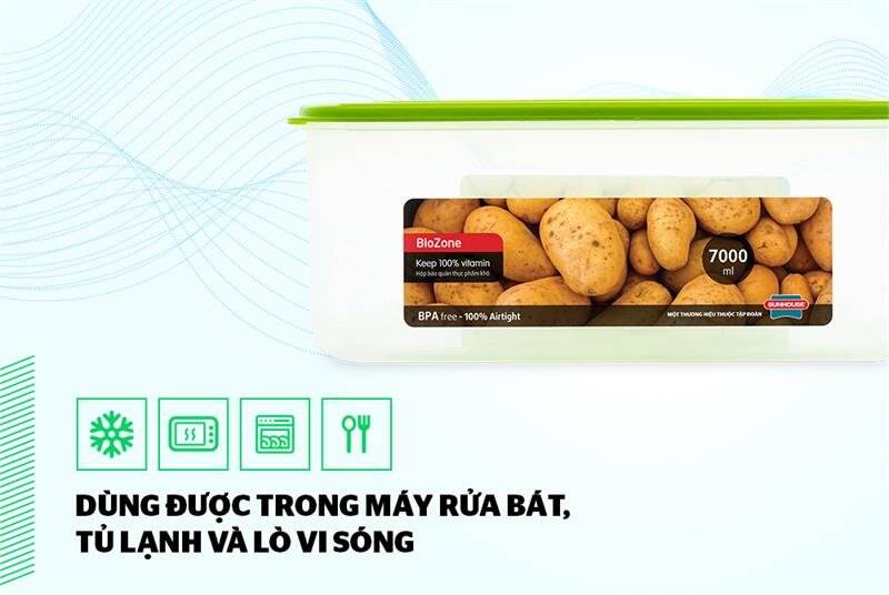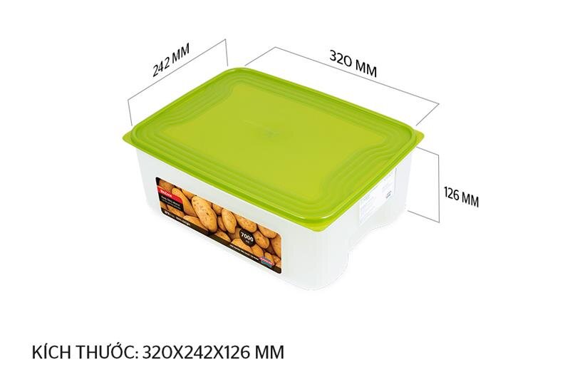 Với thiết kế hộp chữ nhật nhỏ gọn, dung tích 7000ml, hộp có khả năng bảo quản được một lượng rất lớn thực phẩm khô, giúp bạn sắp xếp thực phẩm ngăn nắp, gọn gàng. Đặc biệt, các hộp được thiết kế thông minh với kích thước tiêu chuẩn, có thể xếp chồng lên nhau để tiết kiệm không gian tủ lạnh.  HƯỚNG DẪN SỬ DỤNG: