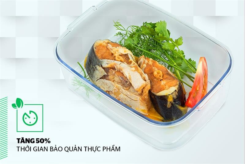 Nhờ thiết kế van chân không thông minh và độ kín hơi 100%, hộp BioZone giúp bạn giữ nguyên độ tươi ngon và tăng 50% thời gian bảo quản thực phẩm.