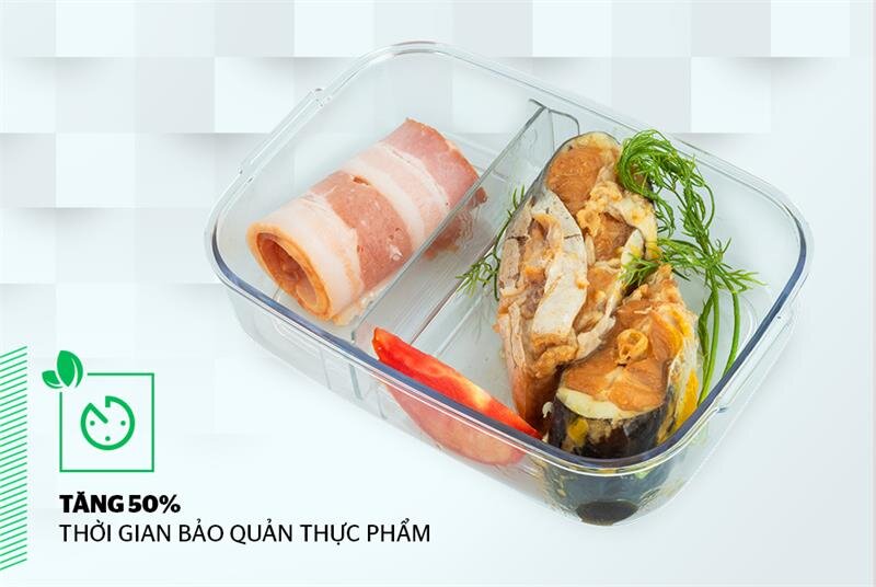 Nhờ thiết kế van chân không thông minh và độ kín hơi 100%, hộp BioZone giúp bạn giữ nguyên độ tươi ngon và tăng 50% thời gian bảo quản thực phẩm.