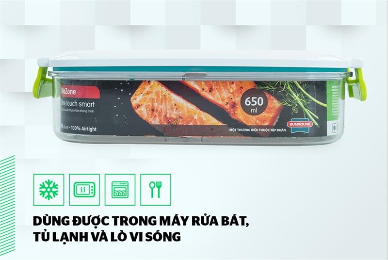 Với thiết kế hộp chữ nhật nhỏ gọn, dung tích 650ml, hộp có khả năng bảo quản được một lượng nhỏ thực phẩm, giúp bạn sắp xếp thực phẩm ngăn nắp trong tủ lạnh để tiết kiệm diện tích.