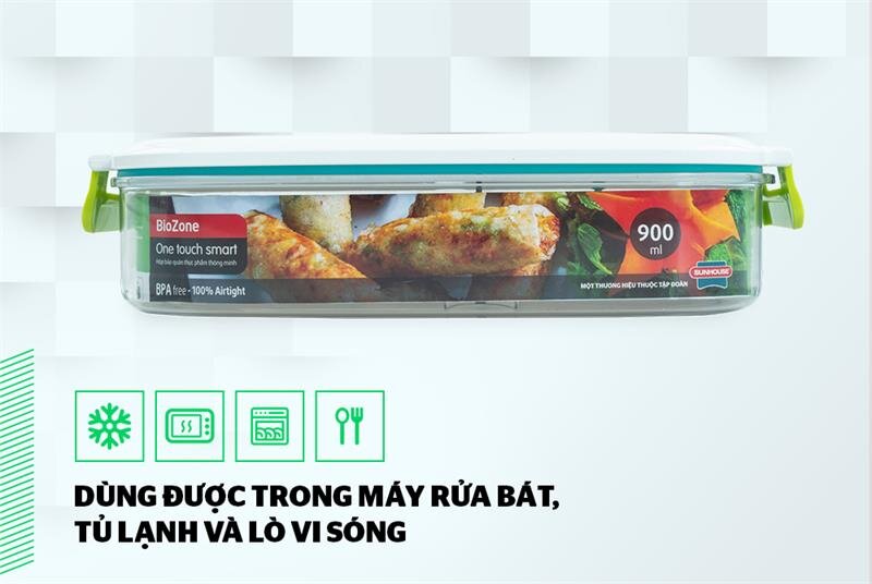 Bạn hoàn toàn yên tâm khi sử dụng hộp BioZone trong tủ lạnh, lò vi sóng và máy rửa bát vì hộp có độ cứng cao, chịu nhiệt từ -30 đến 100 độ C. Đặc biệt, khi dùng trong lò vi sóng, không cần mở nắp, chỉ cần nhấc nhẹ van chân không.