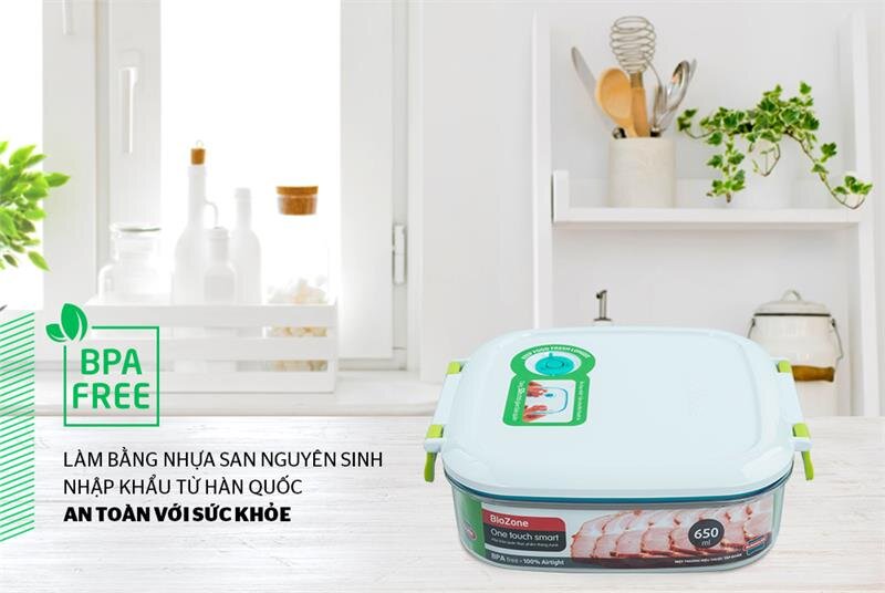 Hộp bảo quản thực phẩm thông minh BioZone 650ml được làm bằng nhựa SAN nhập khẩu từ Hàn Quốc. Đây là loại nhựa nguyên sinh cao cấp, trong suốt, chịu nhiệt lên tới 100 độ C, không chứa chất gây ung thư BPA, có độ bền cao, kháng hóa chất và an toàn với sức khỏe.