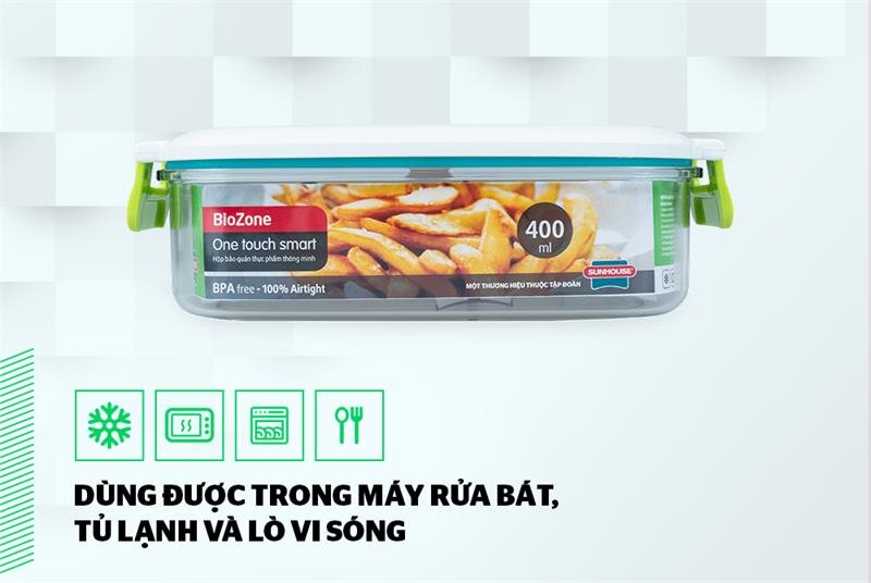 Bạn hoàn toàn yên tâm khi sử dụng hộp BioZone trong tủ lạnh, lò vi sóng và máy rửa bát vì hộp có độ cứng cao, chịu nhiệt từ -30 đến 100 độ C. Đặc biệt, khi dùng trong lò vi sóng, không cần mở nắp, chỉ cần nhấc nhẹ van chân không.