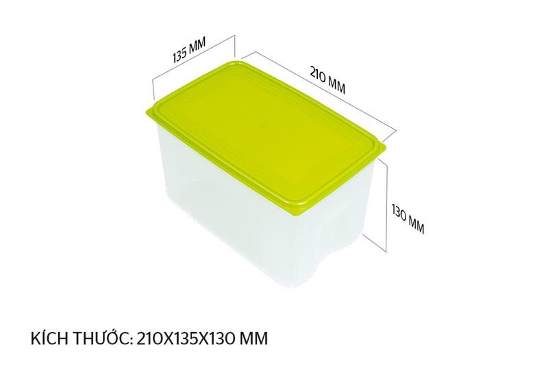 Với thiết kế hộp chữ nhật nhỏ gọn, dung tích 2700ml, hộp có khả năng bảo quản được một lượng khá lớn thực phẩm, giúp bạn sắp xếp thực phẩm ngăn nắp, gọn gàng. Đặc biệt, các hộp được thiết kế thông minh với kích thước tiêu chuẩn, có thể xếp chồng lên nhau để tiết kiệm không gian tủ lạnh. HƯỚNG DẪN SỬ DỤNG: