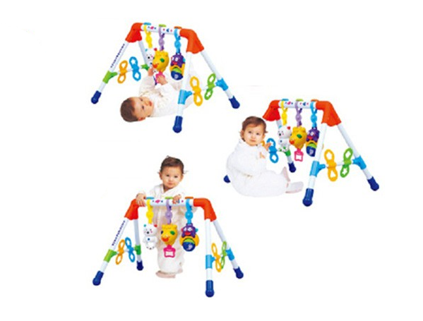 - Khung kệ trang trí nhiều con vật ngộ nghĩnh, nhiều màu sắc với các hình dáng và phát ra âm thanh chuông hay xúc xắc khác nhau, kích thích trí tò mò của bé, ba món đồ chơi đó có thể tách rời khỏi khung làm thành một món đồ chơi độc lập để bé vui chơi thật thỏa thích.