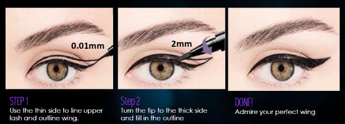 Bút Kẻ Mắt Nước HyperSharp Wing Line Maybelline với đầu cọ cải tiến cùng thiết kế mềm và mảnh chỉ 0.01mm tạo đường kẻ sắc nét, mềm mại, đồng thời rất linh hoạt và dễ điều khiển. Công nghệ màng phim của Bút Kẻ Mắt Nước HyperSharp Wing Line Maybelline độc đáo khô nhanh, không lem, không trôi suốt 17 giờ và hoàn toàn dễ tẩy trang. Bên cạnh đó, cấu trúc ống mực được cải tiến so với phiên bản cũ giúp dòng mực chảy từ ống xuống ngòi đều hơn, đậm hơn, thời gian sử dụng cũng lâu hơn so với phiên bản cũ.