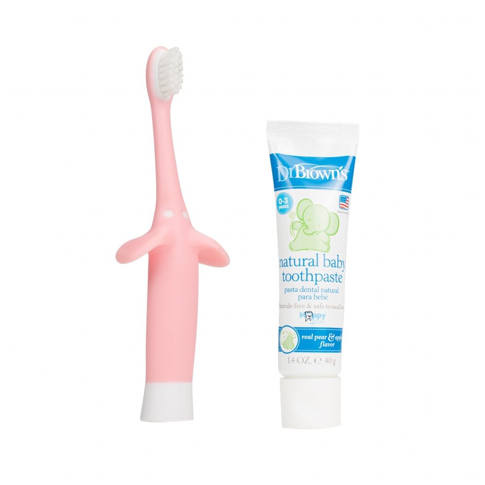 Set Bàn Chải Đánh Răng & Kem Đánh Răng Vị Táo Cho Bé Từ 0 Đến 3 Tuổi Dr Brown's