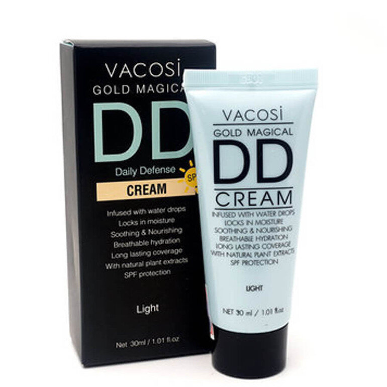 Vacosi Gold Magical DD Daily Defense Cream - Light với chất kem siêu mềm mịn, độ che phủ cực tốt có khả năng mang đến lớp nền trang điểm hoàn hảo trong tích tắc. Sản phẩm an toàn lành tính và không gây hại cho da, phù hợp với cả da khô và da mụn.