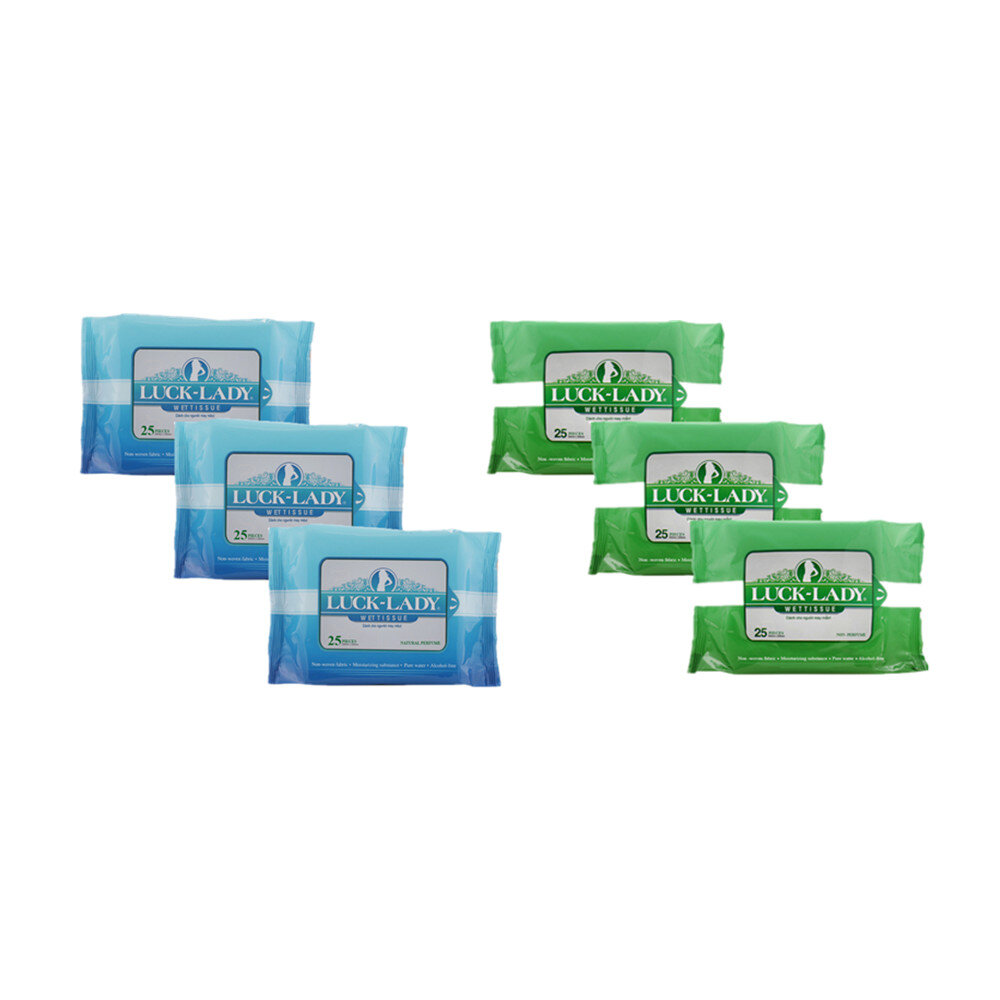 Khăn Ướt Luck Lady 25 Tờ với kích thước bỏ túi, giúp bạn dễ dàng và thuận tiện trong việc tẩy trang, vệ sinh miệng, tay, chân hoặc dùng trong những buổi dã ngoại, du lịch hay công tác. Sản phẩm đang được bán tại Hasaki với 2 loại Combo 3 Gói: