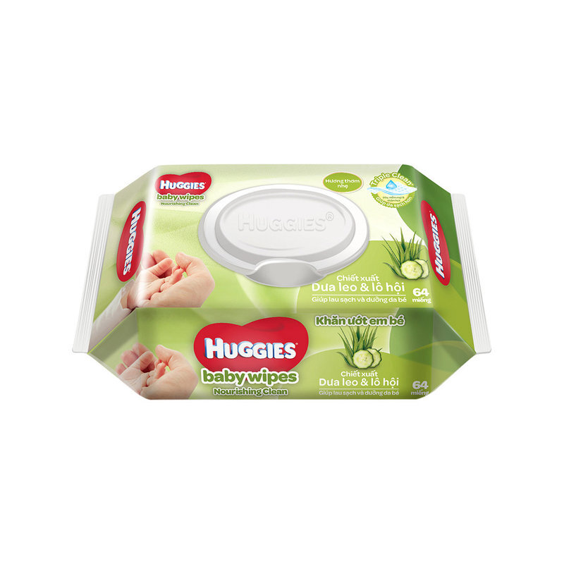 - Khăn Ướt Em Bé Huggies Chiết Xuất Dưa Leo & Lô Hội (Không Mùi) 64 Miếng
