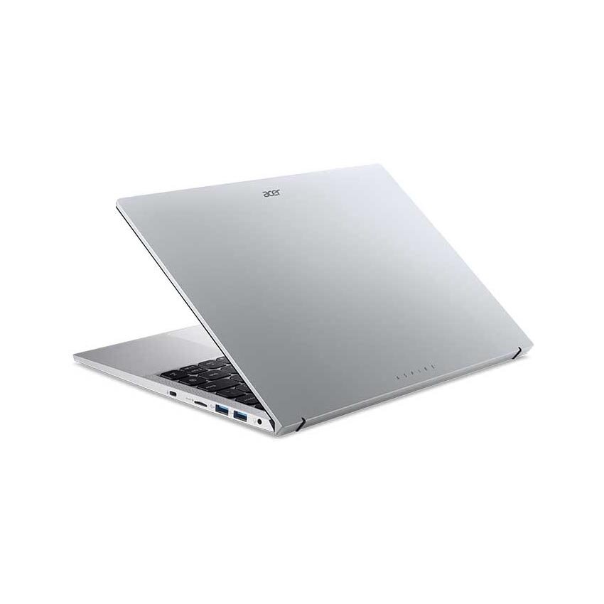 Laptop Acer Aspire Lite được thiết kế siêu mỏng nhẹ với trọng lượng chỉ khoảng 1.46kg và độ dày chỉ 18.9mm, rất thuận tiện để mang theo khi di chuyển. Lớp vỏ nhựa màu bạc (Pure Silver) mang lại vẻ ngoài thanh lịch nhưng vẫn đảm bảo sự bền bỉ. Thiết kế tổng thể tinh tế phù hợp cho sinh viên, nhân viên văn phòng hoặc người dùng yêu thích sự gọn gàng.