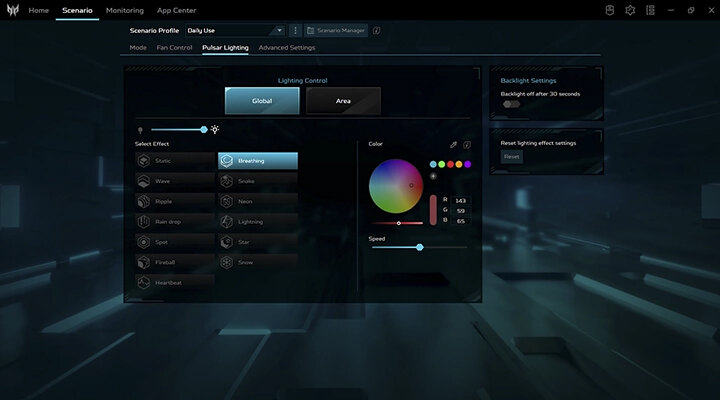 BỐN CHẾ ĐỘ VẬN HÀNHChọn giữa bốn chế độ: Quiet, Balanced, Performance và Turbo (ép xung toàn diện, quạt hết công suất). Cân bằng và ECO cũng khả dụng khi sử dụng pin.ĐIỀU KHIỂN QUẠTChọn giữa Auto, Max hoặc đặt của riêng bạn.