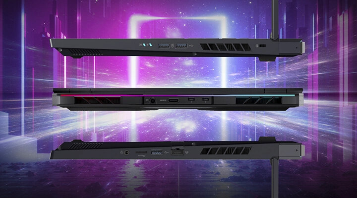 Helios 18 sử dụng hệ thống tản nhiệt hiện đại nhất: hai Quạt AeroBlade™ 3D Thế hệ thứ 5 được thiết kế tùy chỉnh, ống dẫn nhiệt vector và hiệu ứng tản nhiệt của keo tản nhiệt kim loại lỏng trên một CPU vốn đã dẫn đầu ngành. Quạt AeroBlade™ 3D Thế hệ thứ 5 được thiết kế với 89 cánh kết hợp với tản nhiệt kim loại lỏng nang lại hiệu quả thoát nhiệt cực nhanh. Kết nối toàn diệnLaptop Acer Predator Helios 18 PH18-71-94SJ NH.QKRSV.002 sở hữu đầy đủ những cổng kết nối mà người dùng cần. Được đặt các cổng kết nối ở 2 mặt bên và mặt sau của máy, chiếc Laptop này thoải mái đặt các cổng kết nối mà không sợ bị vướng vào nhau.
